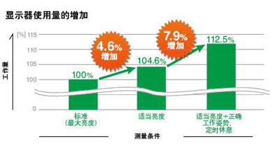 EIZO于2008年做了一个调查,期望能找出视屏使用与眼部疲劳之间的关系。调查指出具Auto EcoView、人体工学设置、或EyeCare等功能的显示器有助减轻眼部疲劳和提升工作效率达12.5%。
